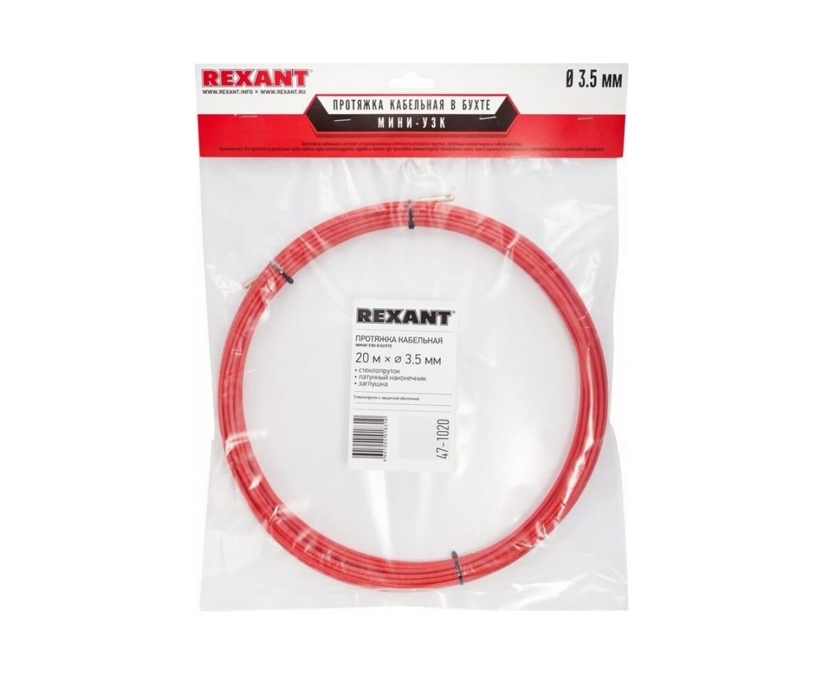 Кабельная протяжка (мини УЗК в бухте, стеклопруток, d=3,5мм, 20м, красная) REXANT 47-1020 используется для протягивания кабелей в трубах или стояках конструкций без открытого доступа. Изделие выполнено с защитой из ПНД высокой плотности и оборудовано токонепроводящим прутком.