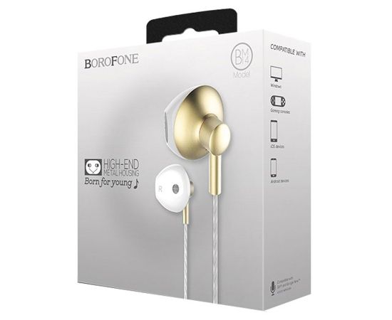 Проводные наушники BOROFONE BM14 Skymelody, Jack 3.5mm, 1.2 м, золотой