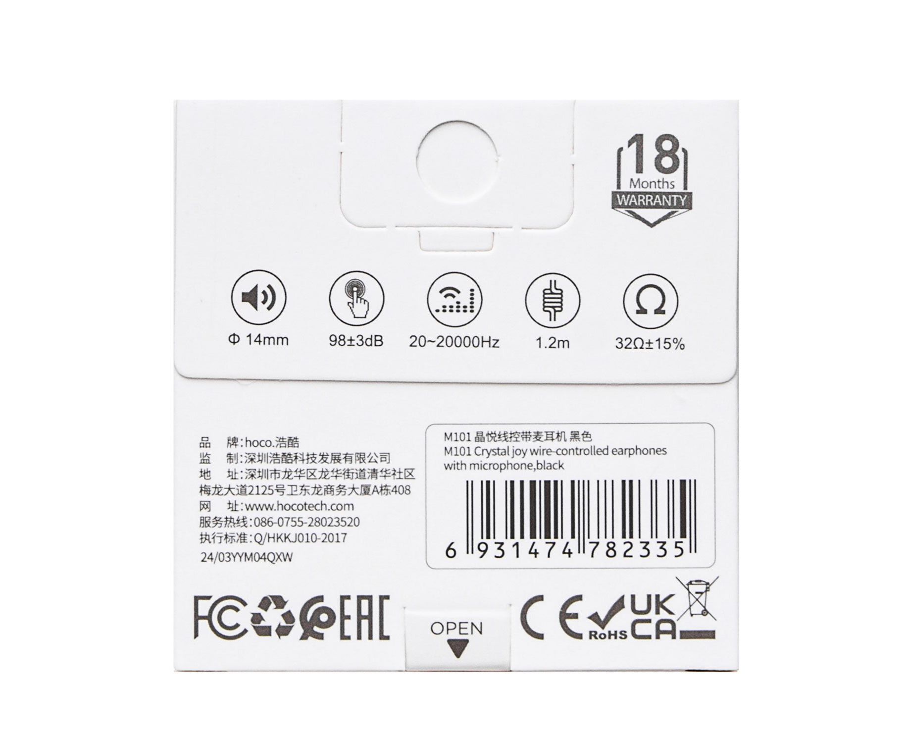 Проводные наушники с микрофоном вкладыши Hoco M101 Crystal joy Jack 3,5 (черный) (235083)