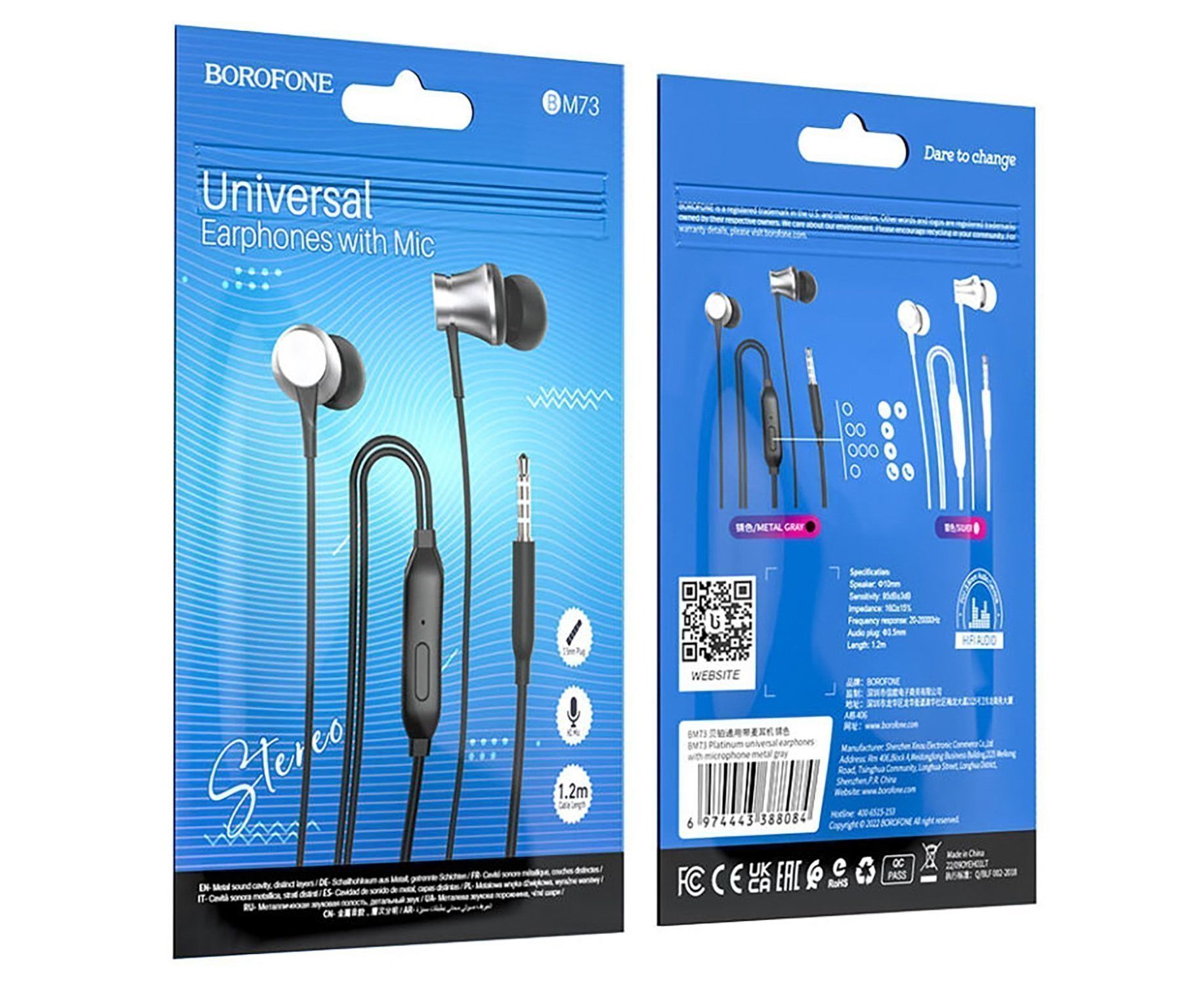 Проводные наушники с микрофоном внутриканальные Borofone BM73 Jack 3,5 (silver) (217923)