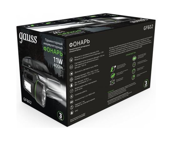 Прожекторный фонарь Gauss Gauss модель GFL602 11W 400lm Li-ion 4800mAh LED 1/10/30 GF602 – мощный, легкий, универсальный и необходимый помощник в быту и не только, который должен быть в арсенале у каждого. Особенностью прожекторного фонаря является высокая яркость и мощность света. Дальность луча от самого мощного фонаря составляет 500 метров. Фонарь обладает современным дизайном корпуса и покрытием «Soft touch» - без эффекта скольжения в руках и приятным тактильным ощущением.