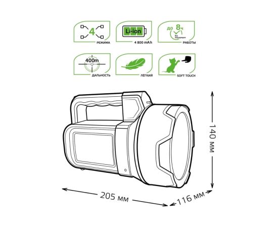 Прожекторный фонарь хорошо подойдет для использования на даче, для альпинизма, поисково-спасательных работ, а также для кемпинга или активного отдыха за городом. Фонарь оснащен Li-ion аккумулятором с большой емкостью, чтобы обеспечить непрерывную работу даже в самых критичных моментах.
