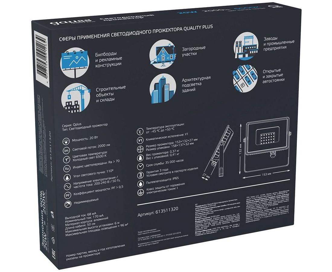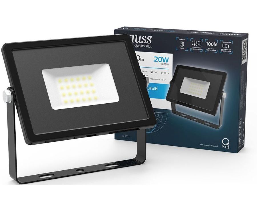 Прожектор Gauss Qplus уличный светодиодный 20Вт корп.алюм.черный (613511320)