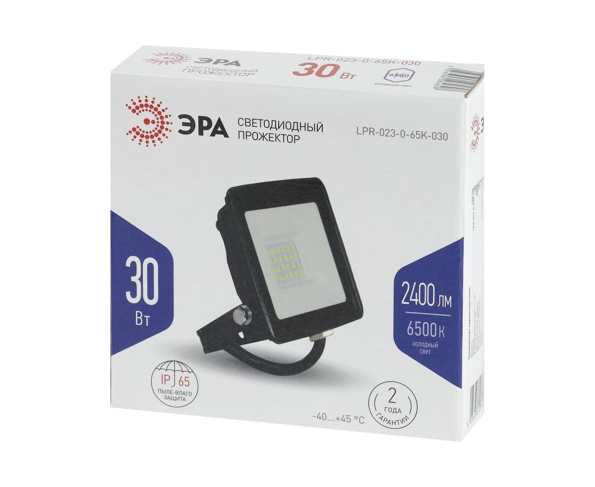 1.Светодиодный уличный прожектор ЭРА LPR-023-0-65K-030 30Вт 6500K 2400Лм 103х99х23,5 Б0052023 отличается простой и быстрой установкой: есть кронштейн специальной формы и регулировочные болты для выбора направления света