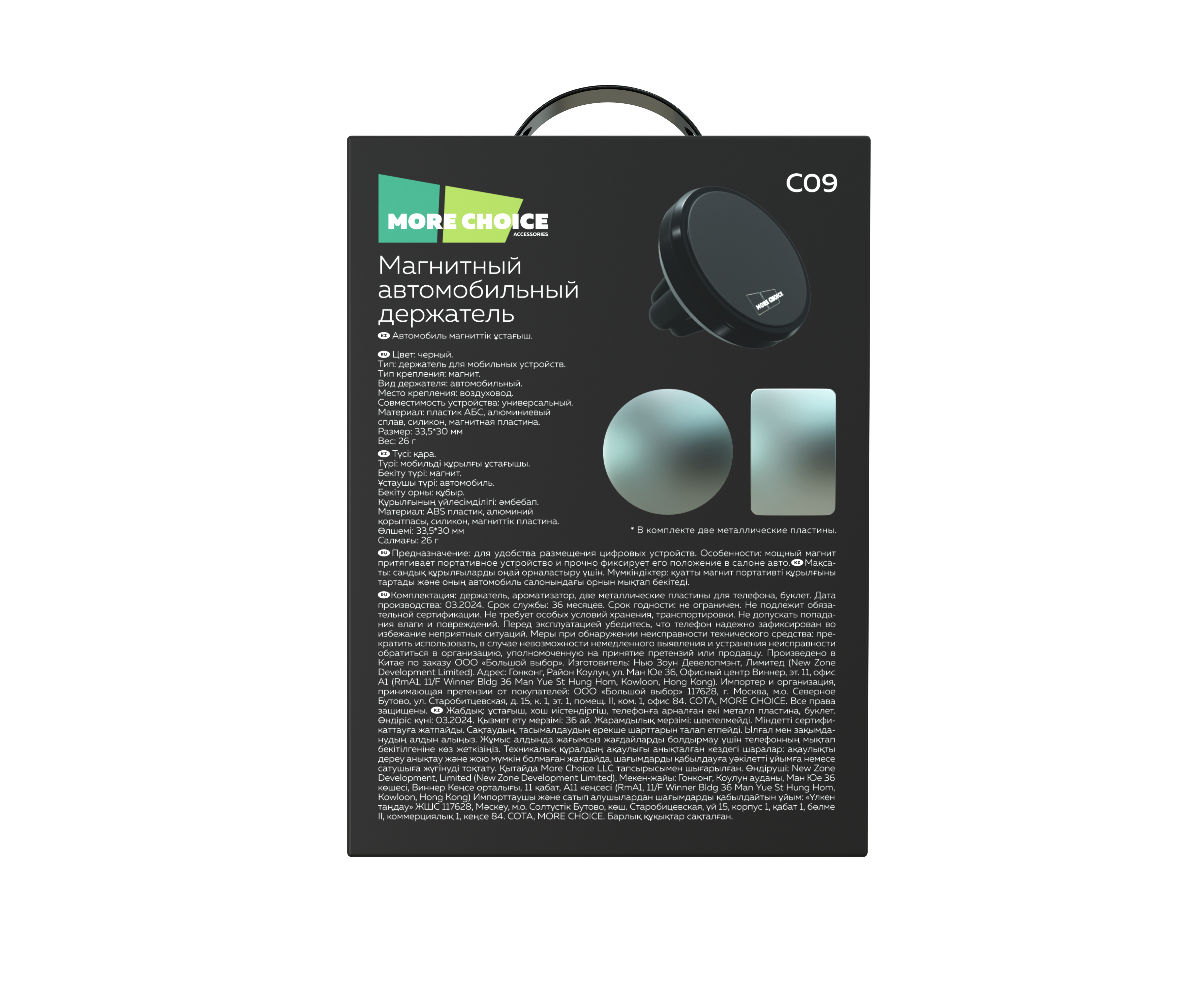 PURE Держатель авто магнитный More choice C09 (2шт.пластины) (Black)