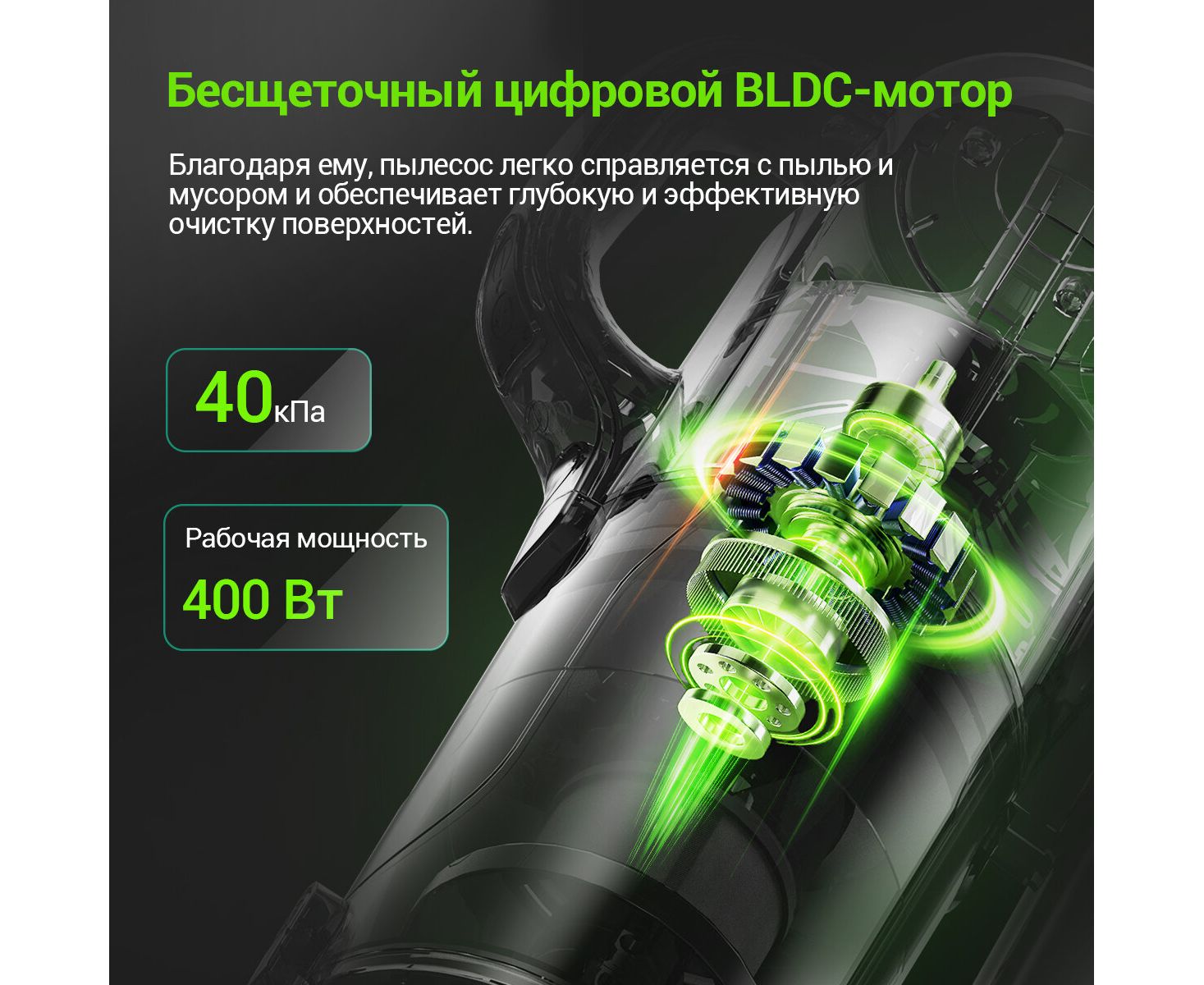 В KaringBee V100 используется усовершенствованный бесщеточный двигатель BLCD и многоконусная система фильтрации, обеспечивающая мощность всасывания до 40 кПа, что позволяет легко справляться с различными задачами по уборке.