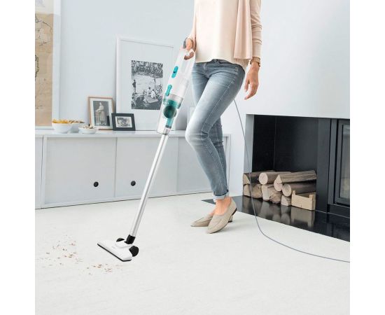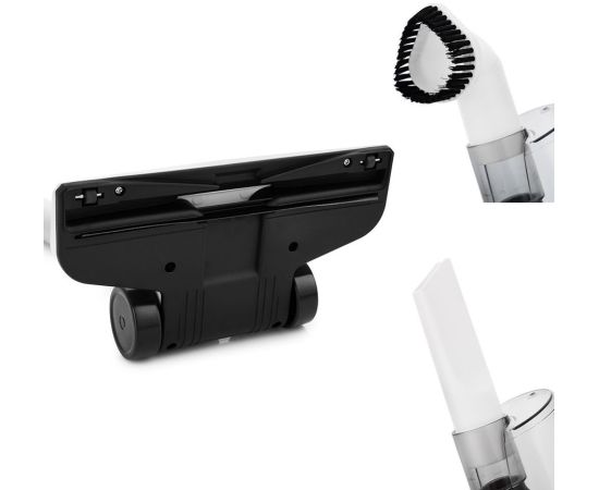 Насадки в комплекте: напольная щётка для уборки плоских напольных покрытий, узкая насадка для уборки углов и щелей, ворсовая насадка для чистки мягкой мебели.