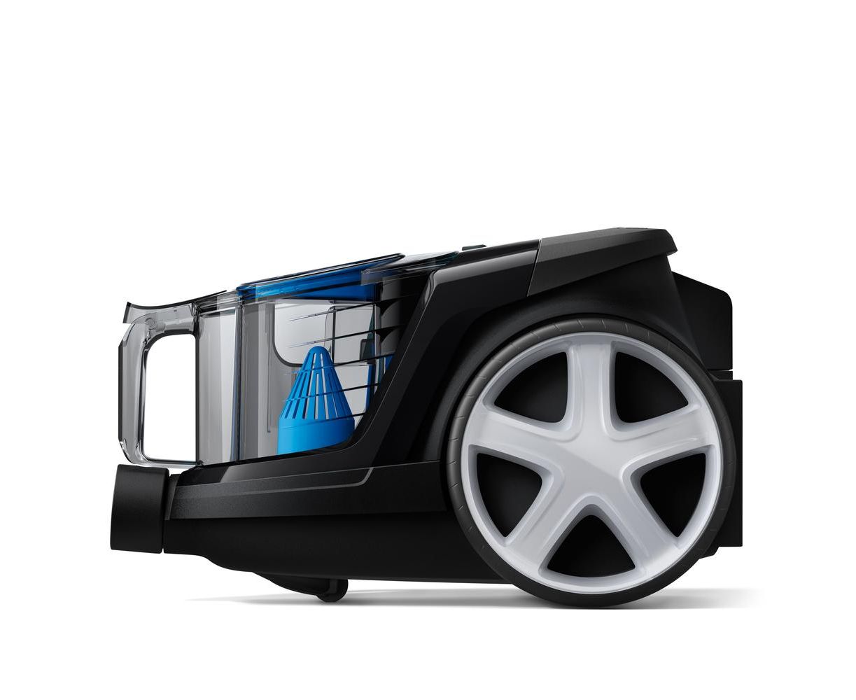 Пылесос из серии Philips PowerPro Compact предлагает высокую производительность в довольно компактном корпусе: размеры устройства составляют 41х28х25 см, а вес — 4.5 кг. Внутри установлен мотор с высокой мощностью 900 Вт, не забыли и о фирменной технологии PowerCyclone 5, которая ускоряет поток воздуха в камере для более эффективного отделения пыли и поддержания высокой силы всасывания. При этом система фильтрации Allergy H13, уровень которой эквивалентен HEPA 13, удерживает 99.9% мелких частиц, в том числе пыльцу, шерсть животных и пылевых клещей, что особенно важно для людей, страдающих аллергией. Вместо мешка Philips PowerPro Compact FC 9331 использует пластиковый контейнер с системой циклон объемом 1.5 л, который можно легко и быстро очистить, не запачкав руки. Радует и комплектация модели, в которую включены сразу четыре насадки. Это основная щетка TriActive, которая предназначена для любого покрытия и всасывает больше мусора благодаря дополнительным отверстиям спереди и по бокам, встроенная в ручку пылевая щетка, а также щелевая и насадка для твердых напольных покрытий. А шнур длиной 6 метров обеспечивает свободу действий и помогает добраться до самых укромных уголков помещения.