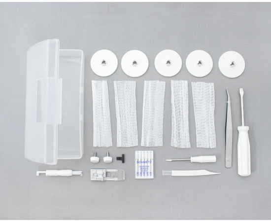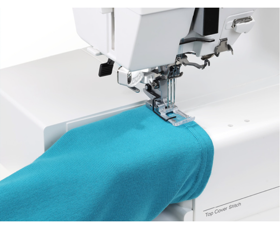 Cover Pro 3000 Professional оснащена встроенным направителем для того, чтобы Вы могли без труда создавать плоские швы с верхним застилом профессионального качества. Еще одна важная новация в сравнении с предыдущими моделями распошивальных машин серии CoverPro - усовершенствованная система контроля натяжения (TLC), сглаживающая натяжение нитей при переходе от плотного трикотажа к тонкому.
