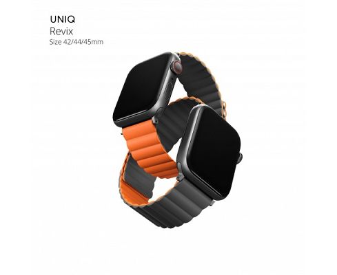 Ремень силиконовый Uniq REVIX для Apple Watch 49/45/44/42, цвет серый/оранжевый (45MM-REVGRYORG)