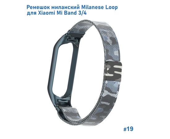 Ремешок миланcкий из нержавеющей стали Great Case Milanese Loop для Xiaomi Mi Band 3/4, 260мм, на магните, камуфляж+белый (19)