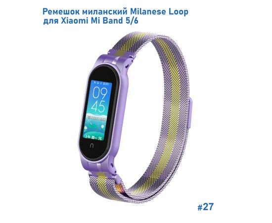 Ремешок миланcкий из нержавеющей стали Great Case Milanese Loop для Xiaomi Mi Band 5/6, 260мм, на магните, фиолетовый+золотой (27)