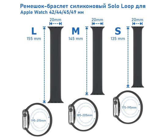 Ремешок-браслет силиконовый Great Case Solo Loop для Apple Watch 42/44/45/49 мм, M(145мм), синий (13)
