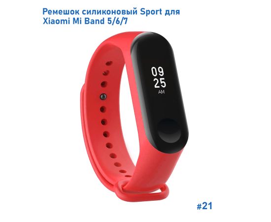 Ремешок силиконовый Great Case Sport для Xiaomi Mi Band 5/6/7, 250мм, на кнопке, красный (21)