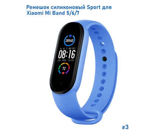 Ремешок силиконовый Great Case Sport для Xiaomi Mi Band 5/6/7, 250мм, на кнопке, лазурный (3)