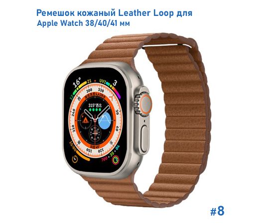 Ремешок кожаный Great Case Leather Loop для Apple Watch 38/40/41 мм, 225мм, на магните, коричневый (8)