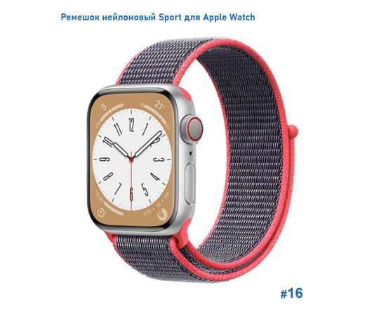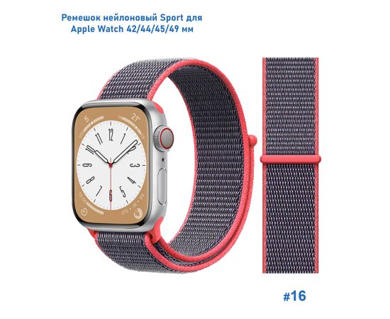Ремешок нейлоновый Great Case Sport для Apple Watch 42/44/45/49 мм, 255мм, на липучке, металлик+розовый (16)