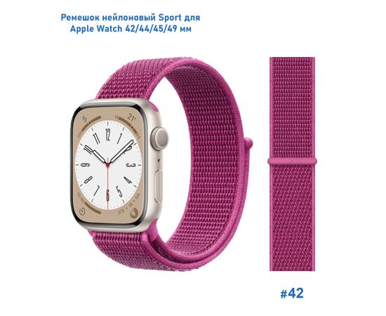 Ремешок нейлоновый Great Case Sport для Apple Watch 42/44/45/49 мм, 255мм, на липучке, пурпурный (42)