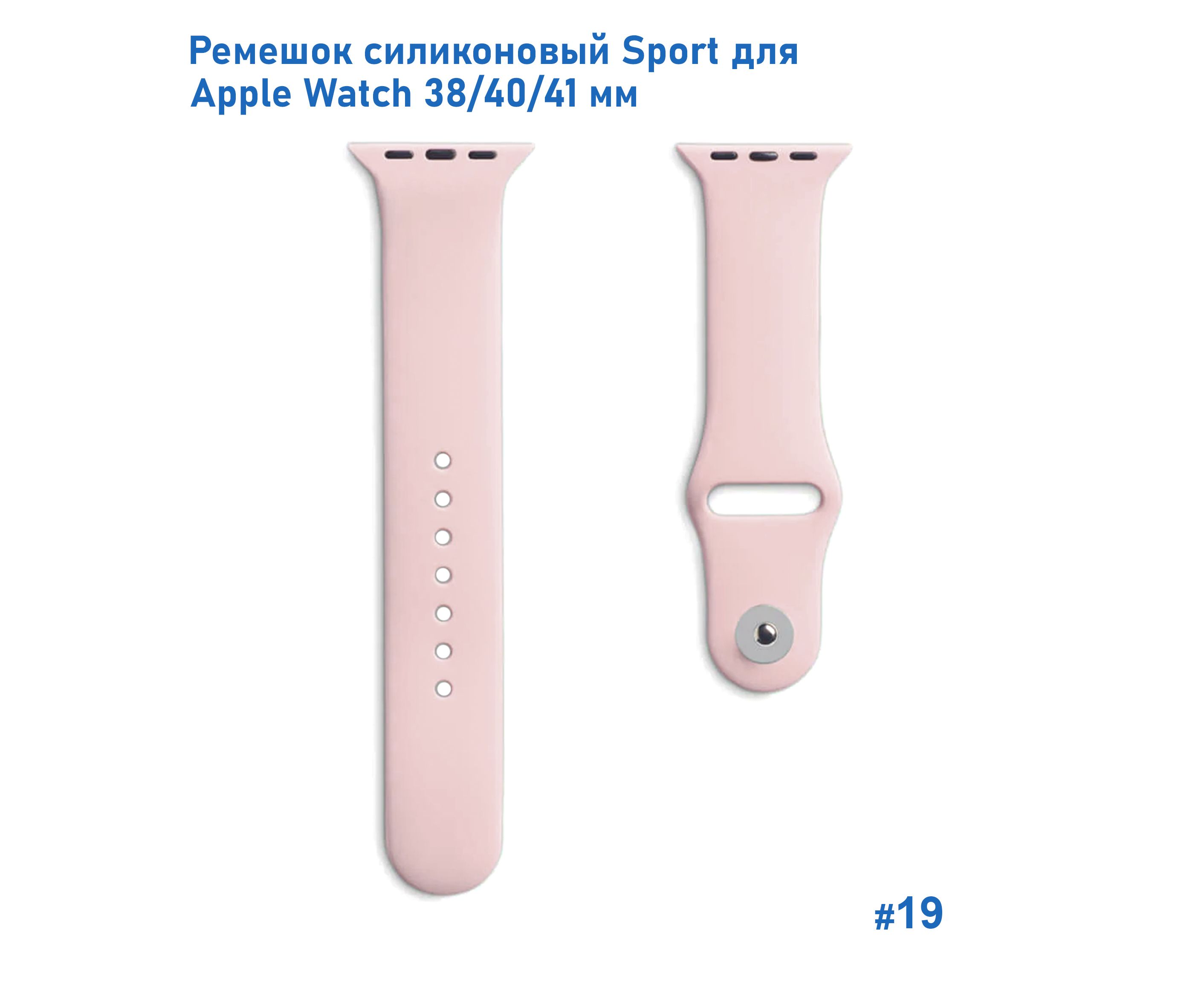 Ремешок силиконовый Great Case Sport для Apple Watch 38/40/41 мм, 225мм, на кнопке, пудровый (19)