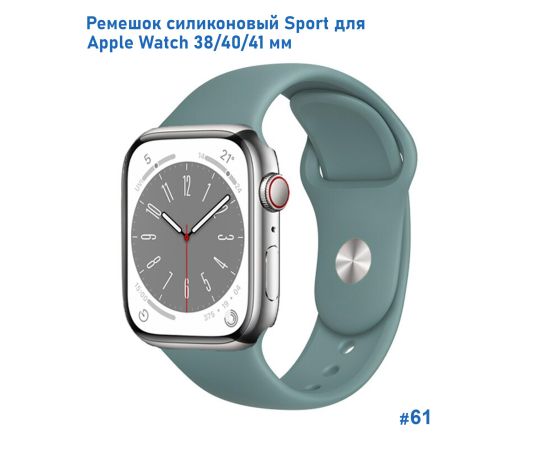 Ремешок силиконовый Great Case Sport для Apple Watch 38/40/41 мм, 225мм, на кнопке, зеленый кактус (61)