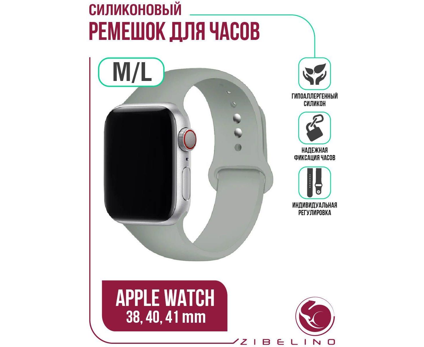 Ремешок силиконовый для Apple Watch 38мм, 40мм, 41мм (размер M/L) серый Эпл Вотч 38 мм 40 мм 41мм