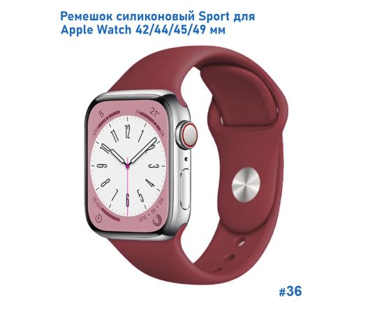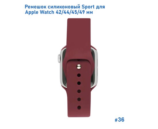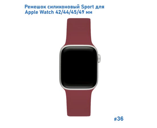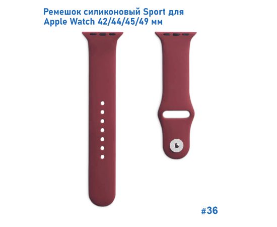 Ремешок силиконовый Great Case Sport для Apple Watch 42/44/45/49 мм, 235мм, на кнопке, бордовый (36)