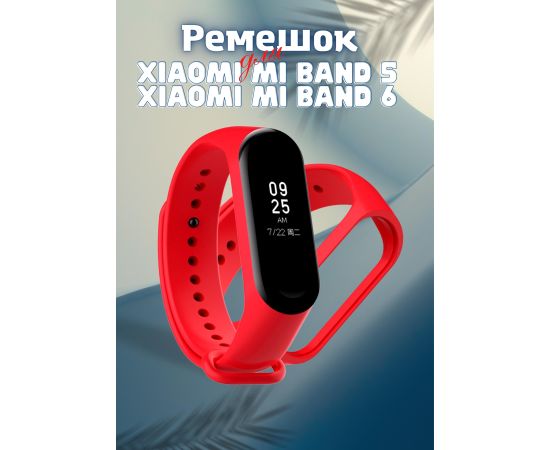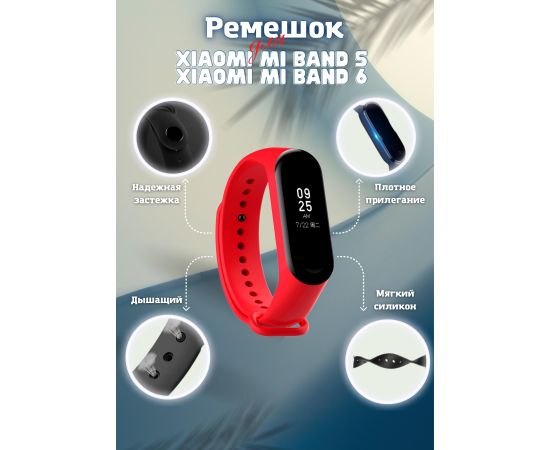 Ремешок силиконовый для Xiaomi Mi Band 5/6, красный, №04