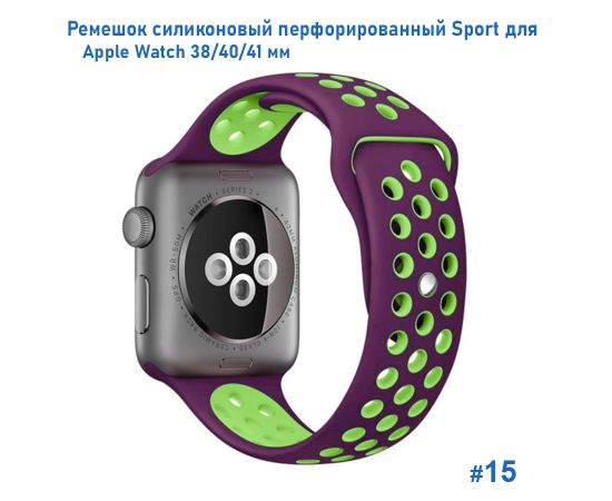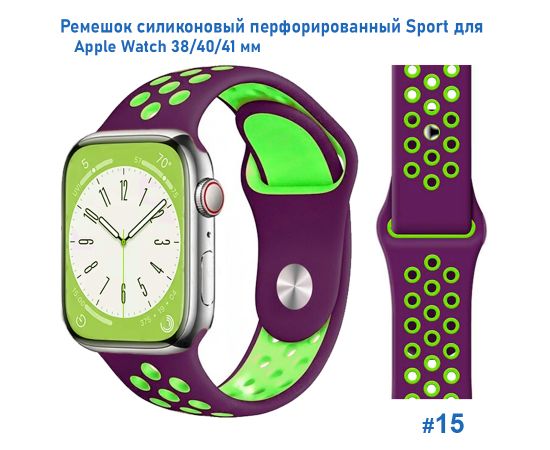 Ремешок силиконовый перфорированный Great Case Sport NK для Apple Watch 38/40/41 мм, 225мм, на кнопке, фиолетовый+зеленый (15)