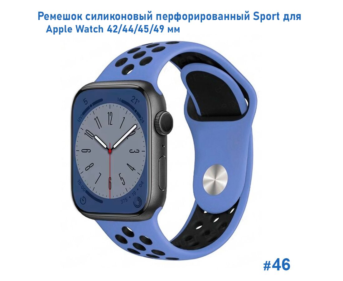 Ремешок силиконовый перфорированный Great Case Sport NK для Apple Watch 42/44/45/49 мм, 235мм, на кнопке, васильковый+черный (46)