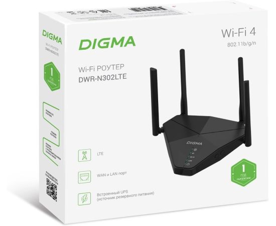 Роутер беспроводной Digma DWR-N302LTE N300