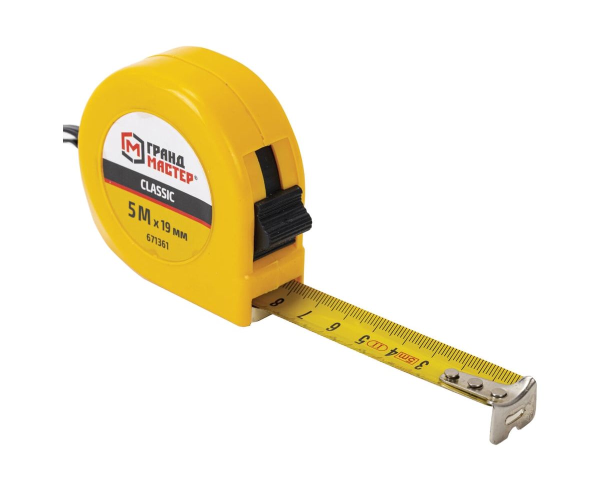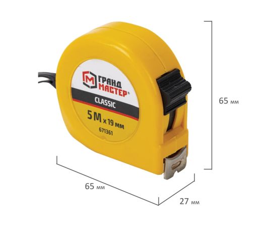 Рулетка измерительная ГРАНДМАСТЕР 671361 Classic 5м*19мм, пластиковый корпус, с фиксатором