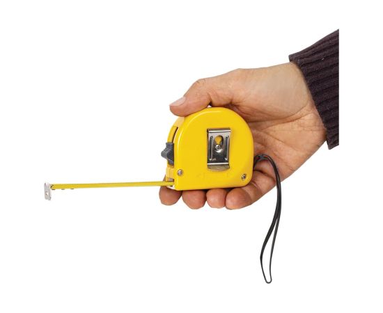 Рулетка оснащена ремешком для ношения на запястье, а также металлической клипсой для крепления на поясе. Эргономичный дизайн с вертикальным фиксатором измерительной ленты позволит использовать рулетку даже одной рукой.
