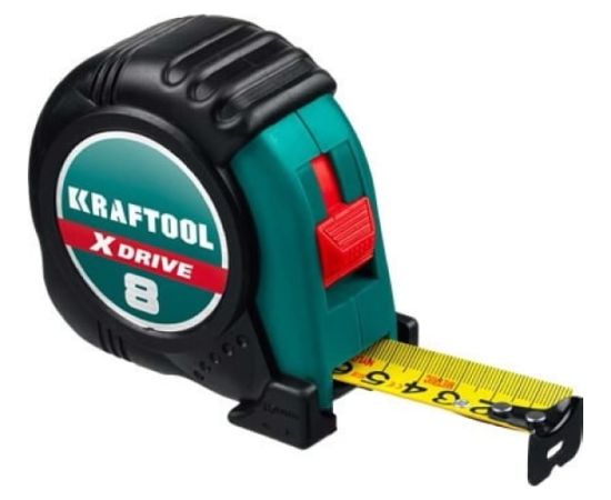 Рулетка KRAFTOOL X-Drive 8м/25мм с ударостойким обрезиненным корпусом 34122-08_z02 представляет собой высокоточный измерительный инструмент. Прочный пластиковый корпус облегчает удержание и использование.