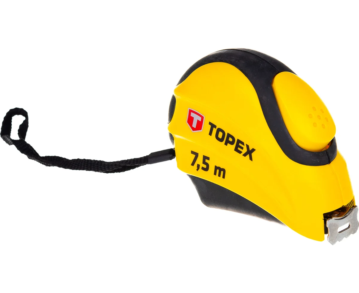 Рулетка TOPEX 27C387 стальная, автоматическая блокировка сматывания ленты, двухкомпонентный корпус, двойной лаковое покрытие