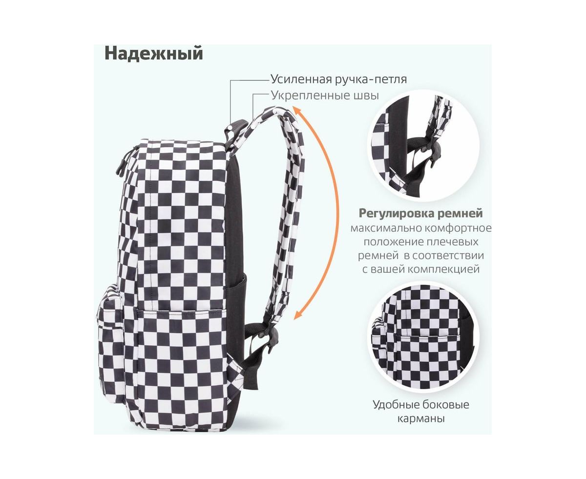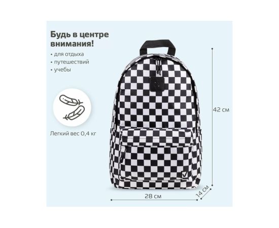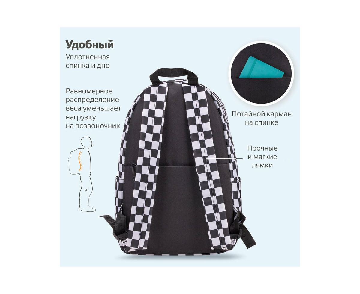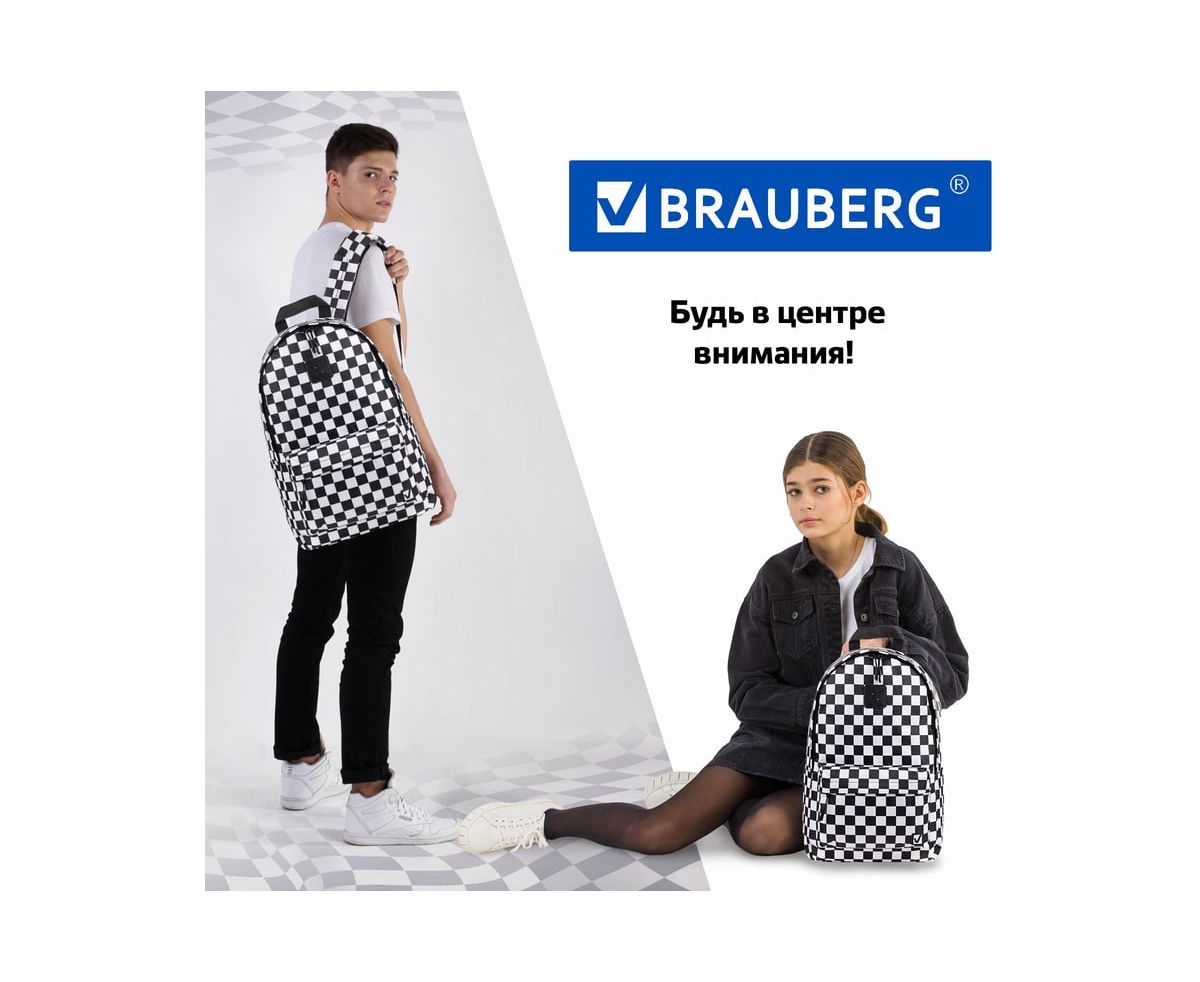 Универсальный рюкзак BRAUBERG POSITIVE, потайной карман, Black and White, 42x28x14см, 270777 занимает лидирующие позиции по популярности среди молодежи.