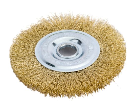 Щетка имеет волнистую форму проволоки с латунированным покрытием, продлевающим срок службы инструмента.