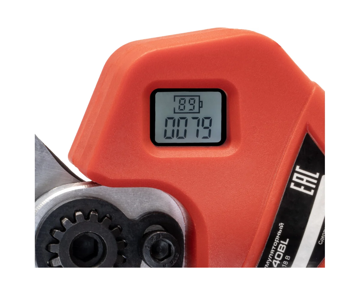 Секатор имеет два режима работы и возможность выбора ширины реза, что делает его универсальным помощником в саду. ЖК дисплей с подсветкой помогает контролировать процесс работы, а защита от случайного включения гарантирует безопасность.
