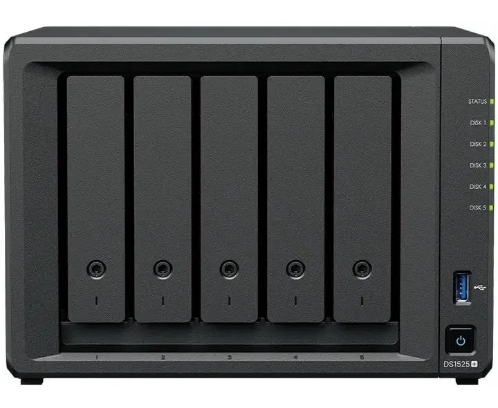 Сетевое хранилище Synology DS1525+ (5x2.5"/3.5" SATA, 2хM.2 2280 NVMe SSD, Ryzen V1500B-2.2GHz, 8GB DDR4, 2x2,5 Гбит/с)