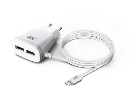 Сетевое зарядное устройство 2USB, 2,1A, 8pin, белое