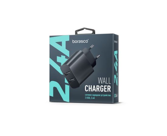 Сетевое зарядное устройство 2USB, 2,4A, черное