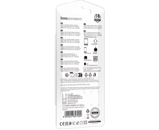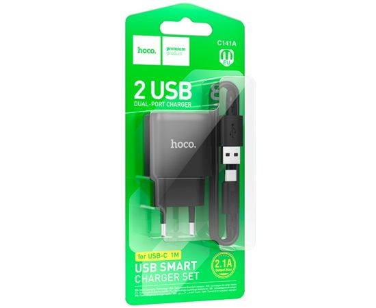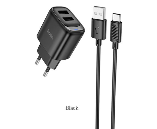 Сетевое зарядное устройство HOCO C141A/ СЗУ + Кабель Type-C 1m/ 2 USB/ Выход: 12W/ Черный