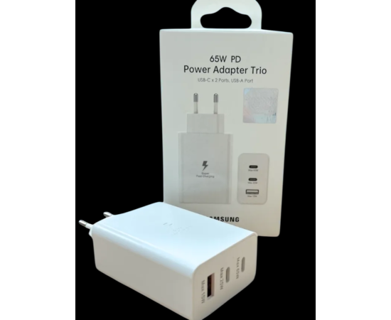Сетевое Зарядное Устройство Samsung 65W PD adapter trio USB-Cx2 Ports, USB-A port black Белый ( EP-T6530)