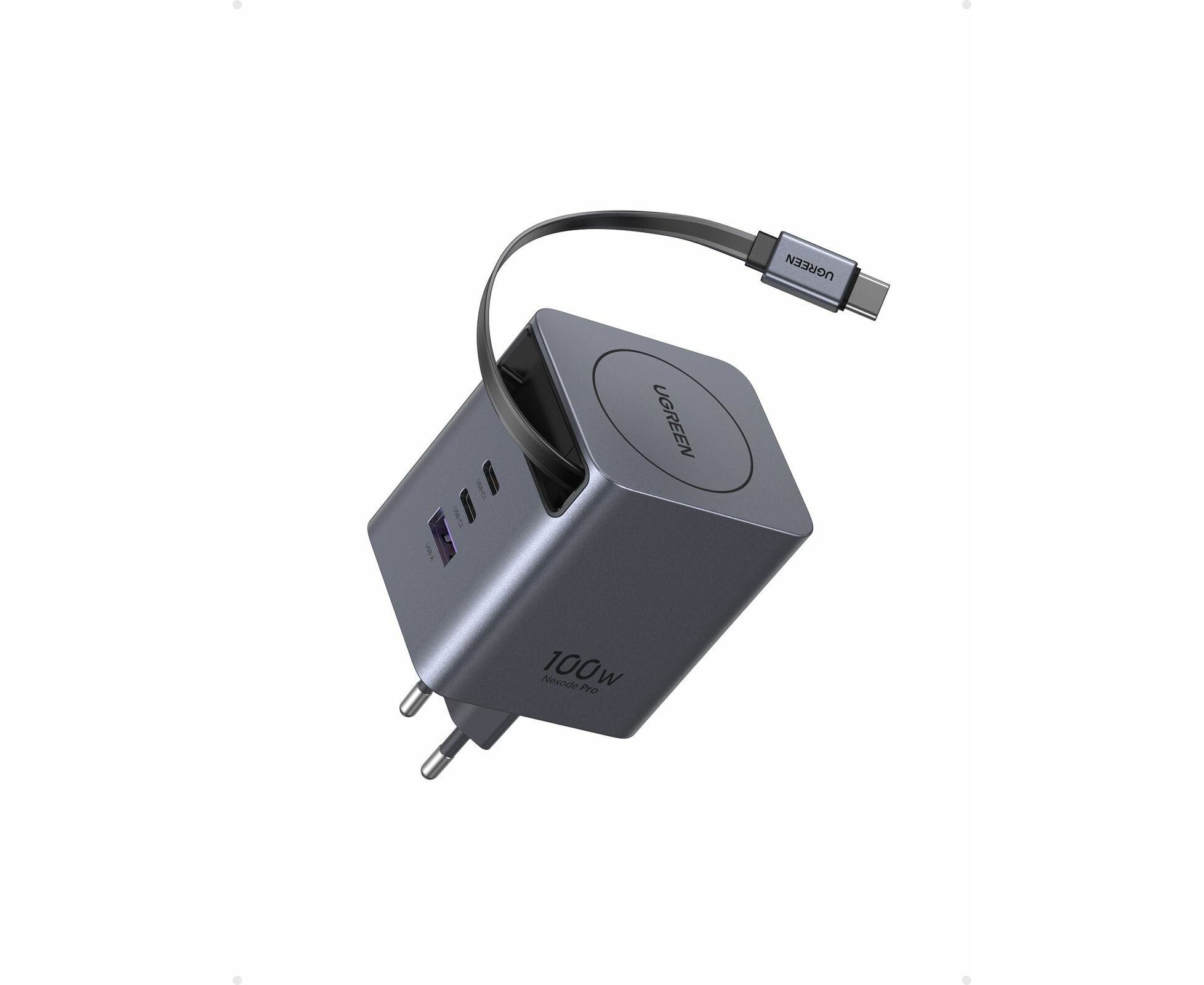 Сетевое зарядное устройство UGREEN X616 (65828) 100W GaN Fast Charger 2*USB-C USB-A with Retractable Cable USB-C серый космос