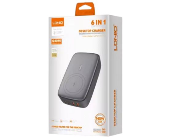 Сетевое ЗУ GaN LDNIO Q4010/ / Беспроводная зарядка Qi 15W/ PD+PPS/ Выход: 3.3-20V, max 140W/ Серый