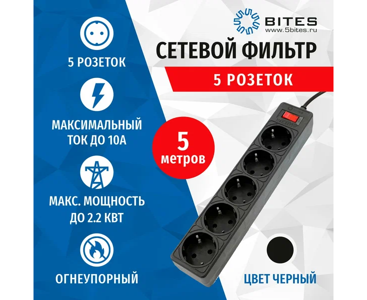 Сетевой фильтр 5bites Garda SP5B-550 5S/3*0.75mm2/5M/Black
