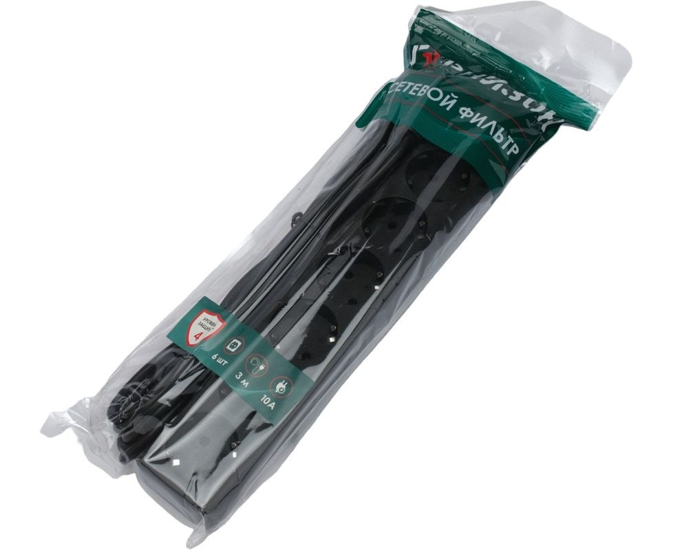 Сетевой фильтр Гарнизон ECL-6-B-3 6р, 10А, 3м черный