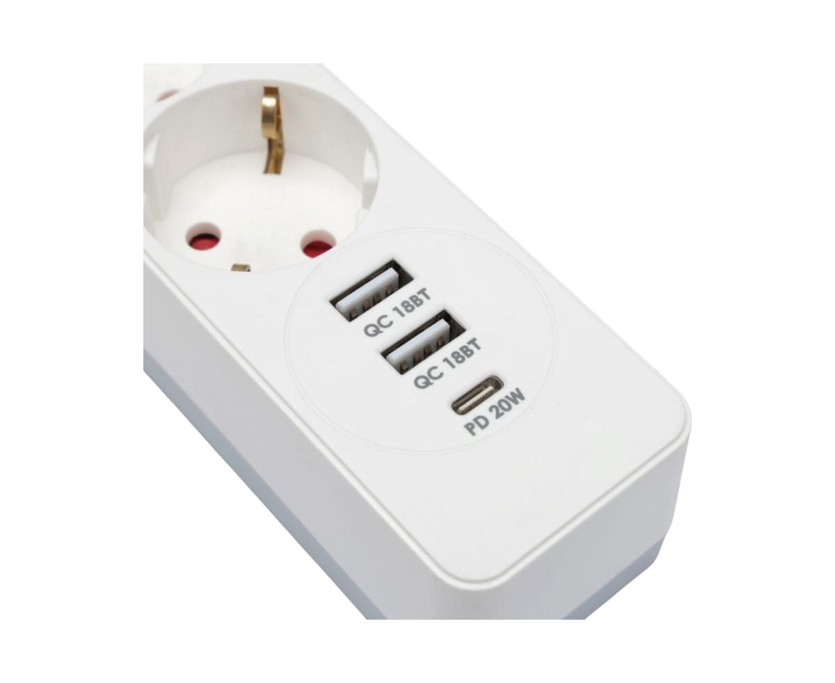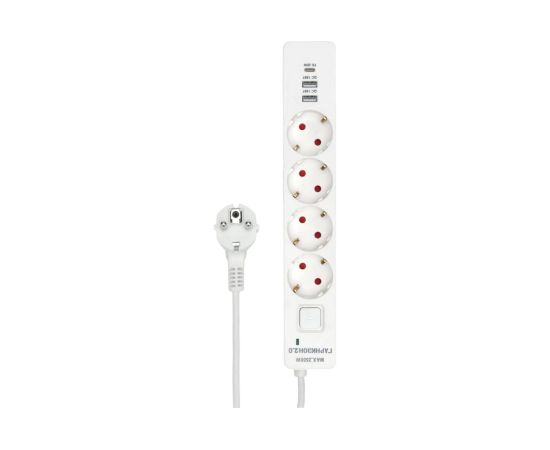 Технические характеристики Длина кабеля 4 м Количество розеток 4 шт Напряжение сети 220 В Тип провода ПВС Сечение провода 3х0.75 мм² Заземление есть Выключатель на корпусе есть Max нагрузка (Вт) 2500 Мощность (кВт) 2.5 Номинальная сила тока 10 А Количество USB портов 2 шт Крепление на стену нет Световая индикация да Морозостойкий нет Габариты без упаковки 310.4x50x40.2 мм Защитные шторки есть Цвет провода белый Порт USB Type-C да Цвет корпуса белый Сила тока USB 3 А С выключателем на каждую розетку нет Для подключения к ИБП нет