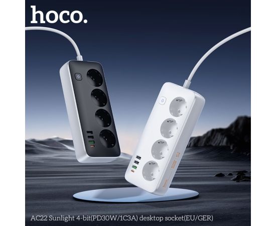 Сетевой фильтр HOCO AC22 Sunlight 4-bit (PD30W/1C3A) (L=1.5M) (черный)