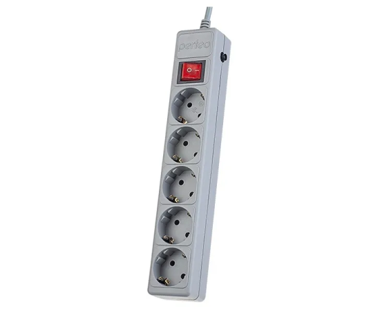 Сетевой фильтр Perfeo "POWER+", 3,0м, 5 розеток, (PF-PP-5/3,0-G), серый