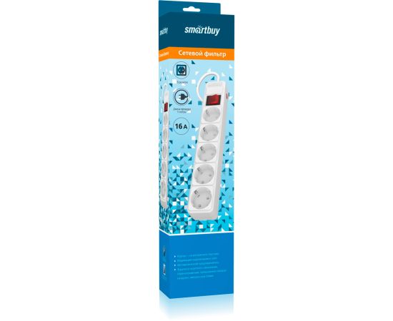 Сетевой фильтр Smartbuy SBSP-5-30-W 16А, 3500 Вт, 5 гнезд, без з/ш, с з/к, ПВС 3x1.0мм, 3м, белый